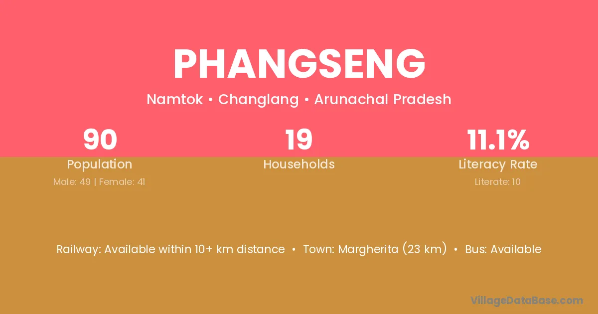 Margherita (23 km) is the nearest town to Phangseng village for major economic activities and is located approximately 23 km away.