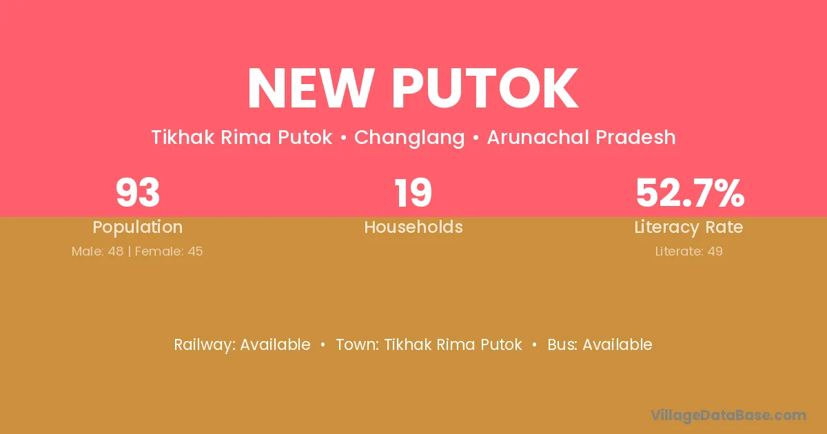 The literacy rate of New Putok village is 52.69%. Male literacy stands at 60.42% and female literacy at 44.44%.