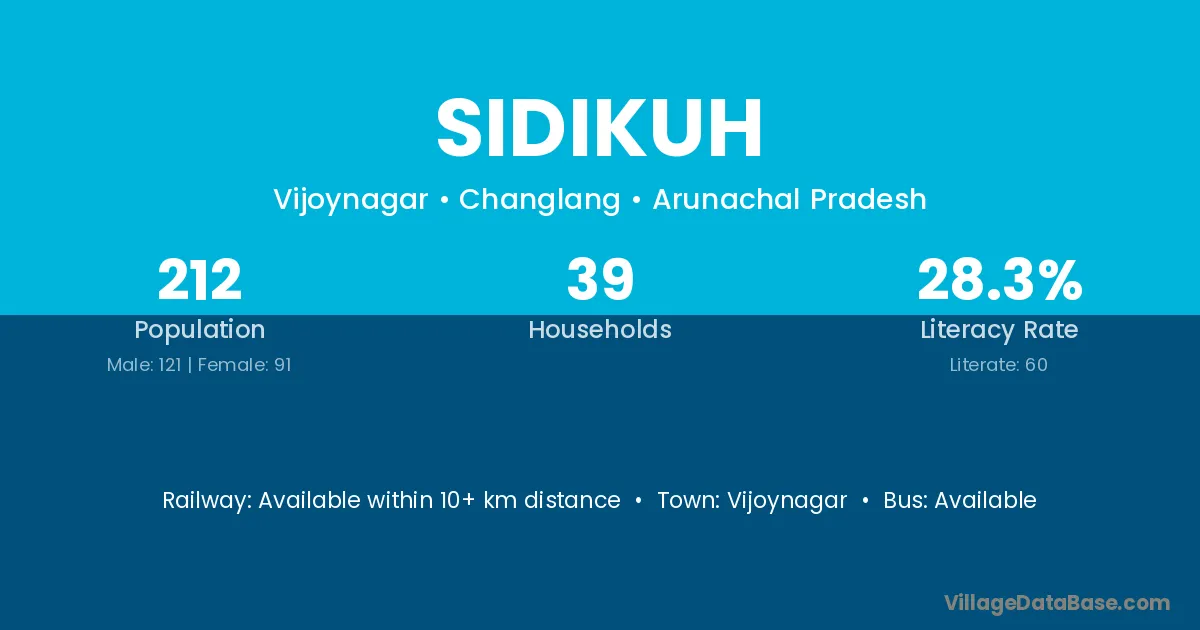 Sidikuh village has a total population of 212 people, of which 121 are males and 91 are females.