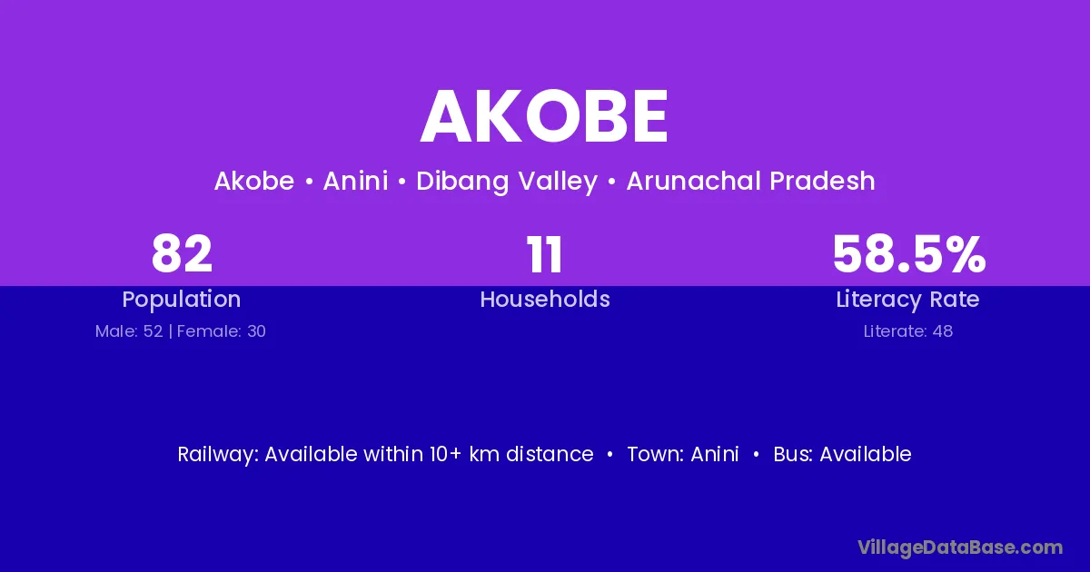 Akobe village has a total population of 82 people, of which 52 are males and 30 are females.