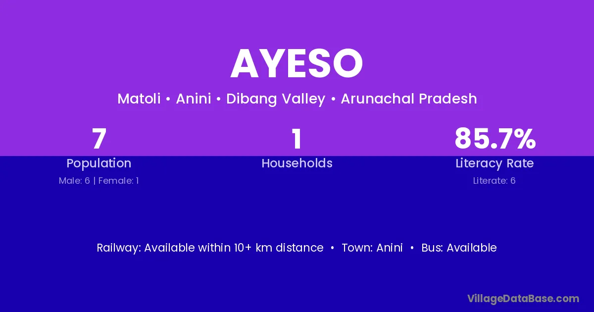 Ayeso village has a total population of 7 people, of which 6 are males and 1 are females.