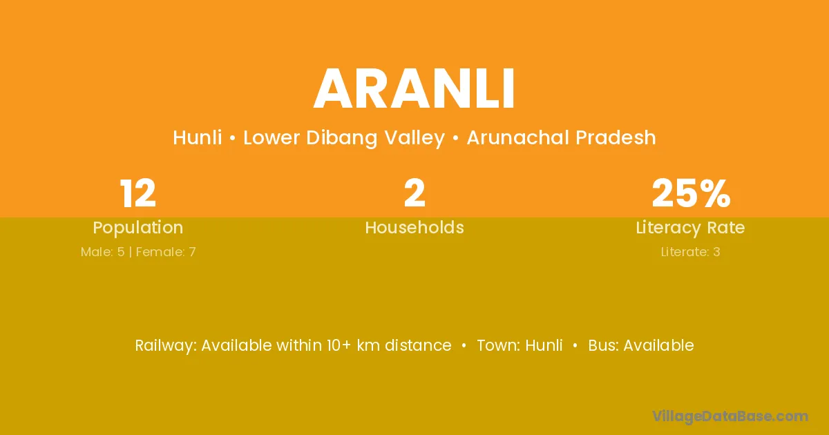 Aranli village has a total population of 12 people, of which 8 are males and 4 are females.