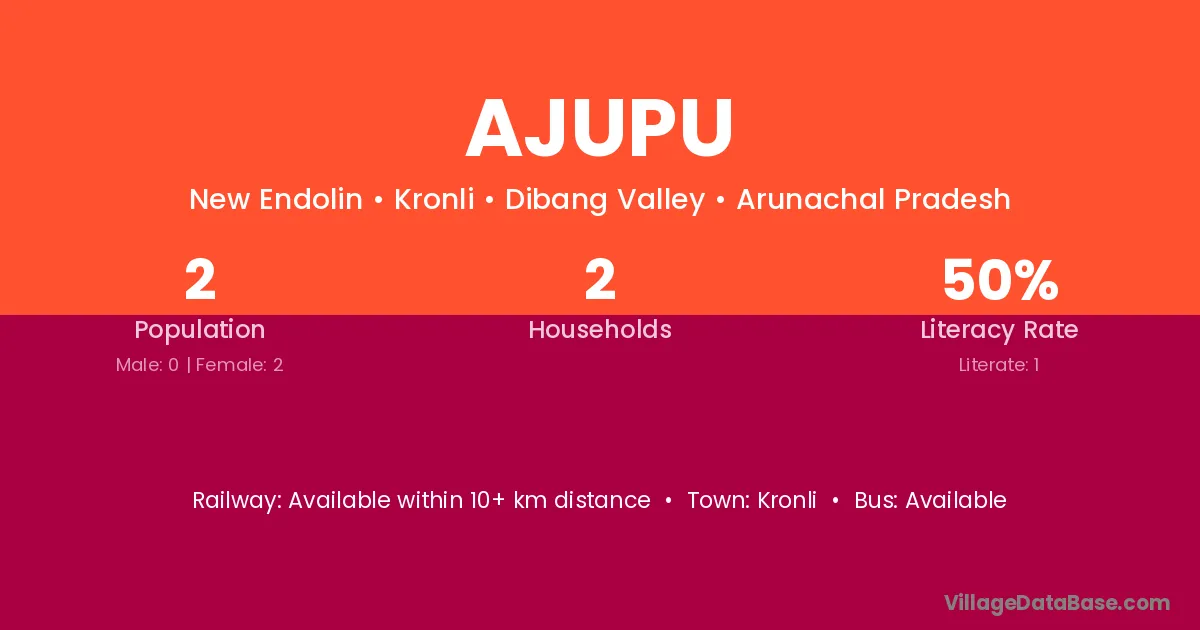 Ajupu village has a total population of 2 people, of which 0 are males and 2 are females.