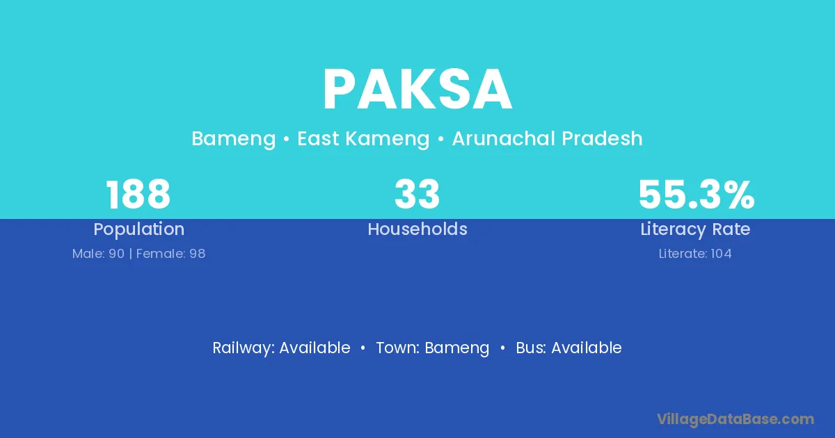 Paksa village has a total population of 188 people, of which 90 are males and 98 are females.