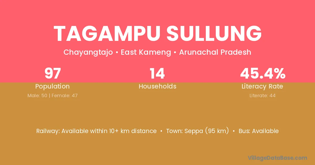 Tagampu Sullung village has a total population of 97 people, of which 50 are males and 47 are females.