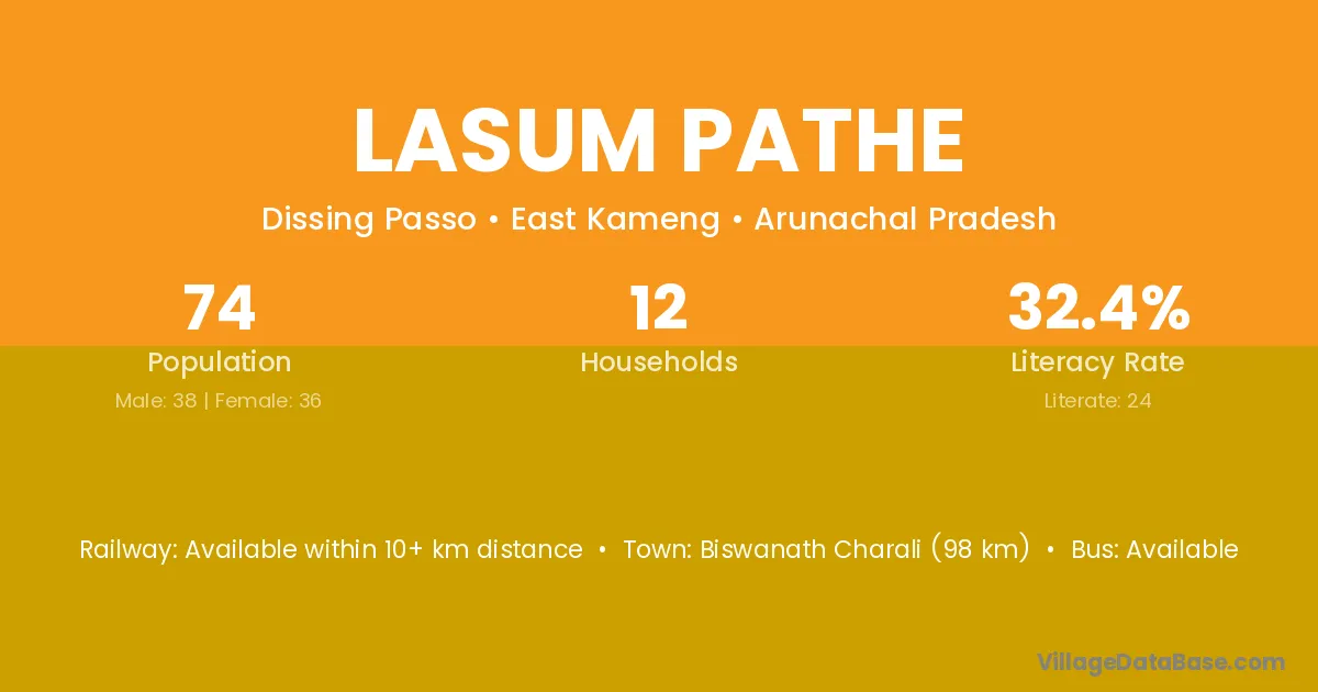 Lasum Pathe village has a total population of 74 people, of which 38 are males and 36 are females.