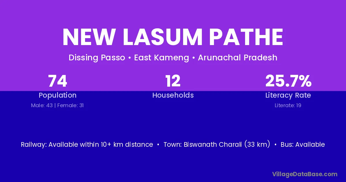 Biswanath Charali (33 km) is the nearest town to New Lasum Pathe village for major economic activities and is located approximately 33 km away.