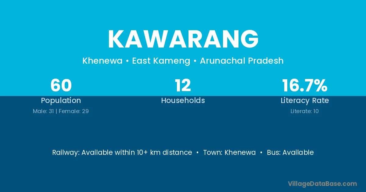 Kawarang village has a total population of 60 people, of which 31 are males and 29 are females.