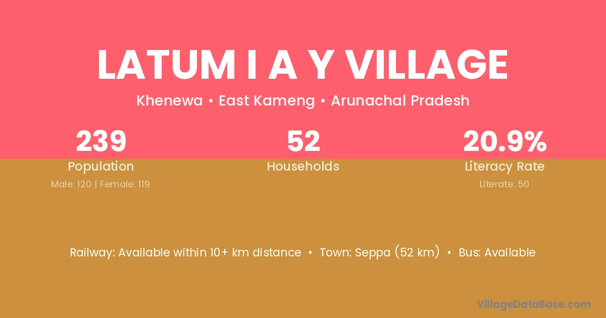 Latum I A Y Village village has a total population of 239 people, of which 120 are males and 119 are females.