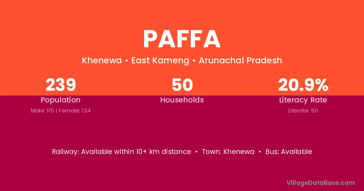 Paffa village has a total population of 239 people, of which 115 are males and 124 are females.