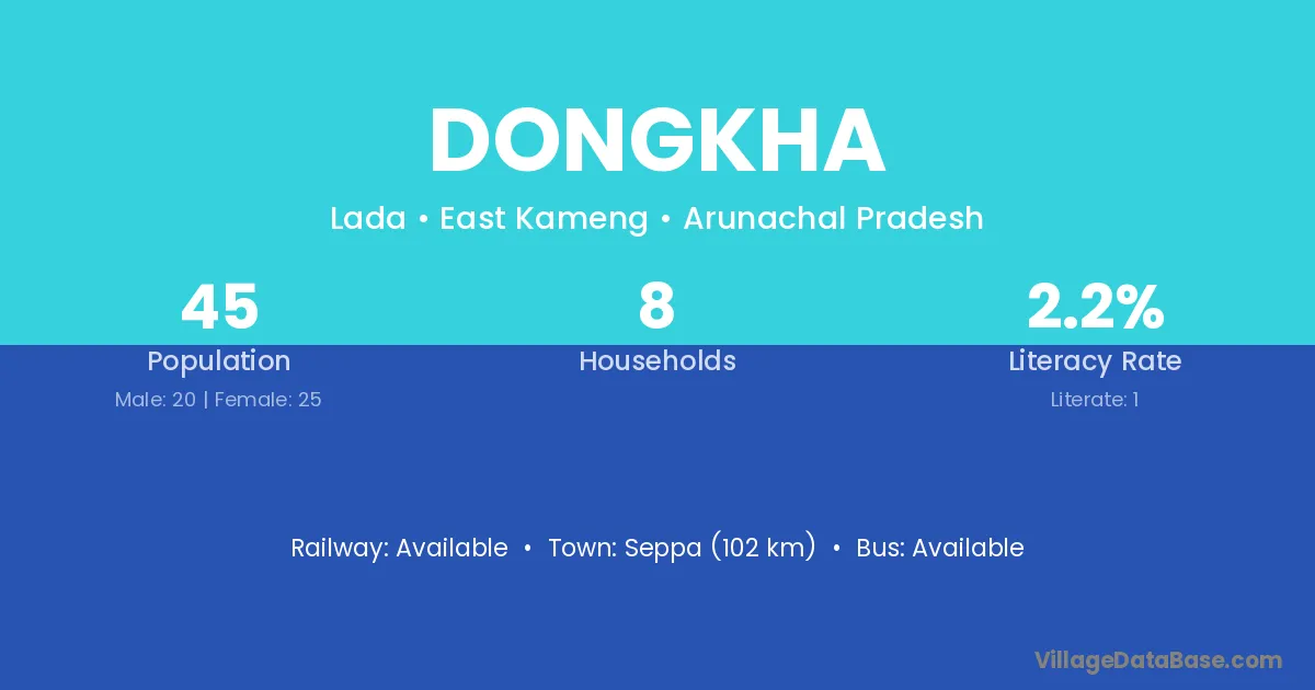 Dongkha village has a total population of 45 people, of which 20 are males and 25 are females.