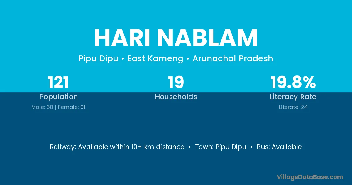 Hari Nablam village has a total population of 121 people, of which 30 are males and 91 are females.