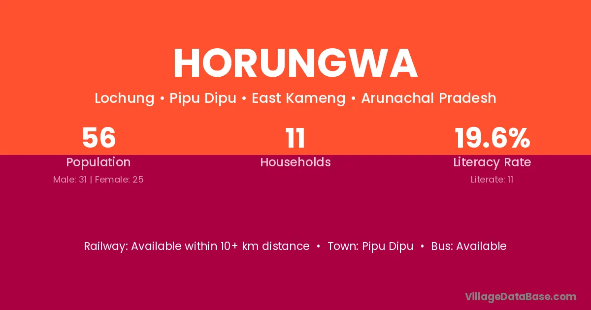 Horungwa village has a total population of 56 people, of which 31 are males and 25 are females.