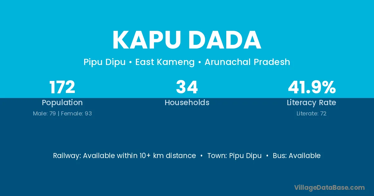 Kapu Dada village has a total population of 172 people, of which 79 are males and 93 are females.