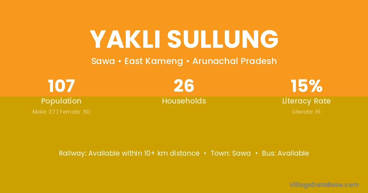 Yakli Sullung village has a total population of 107 people, of which 27 are males and 80 are females.