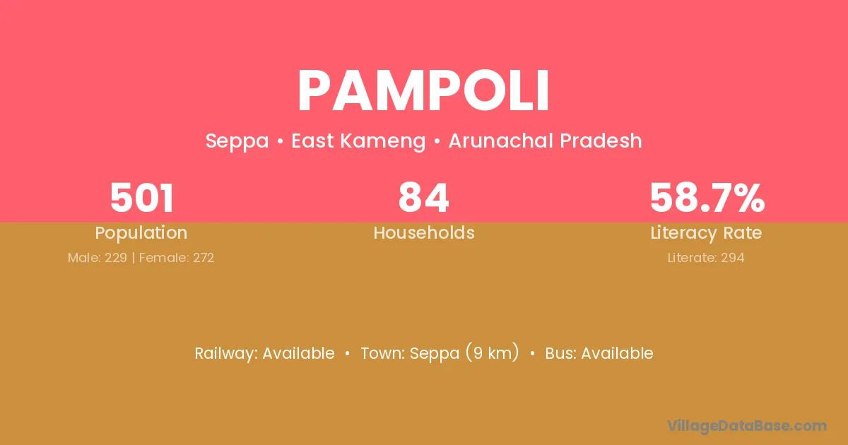 Pampoli village has a total population of 501 people, of which 229 are males and 272 are females.