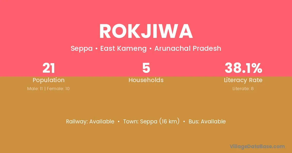Rokjiwa village has a total population of 21 people, of which 11 are males and 10 are females.