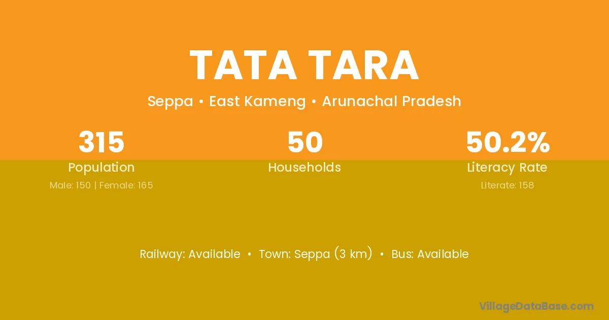 Seppa (3 km) is the nearest town to Tata Tara village for major economic activities and is located approximately 3 km away.
