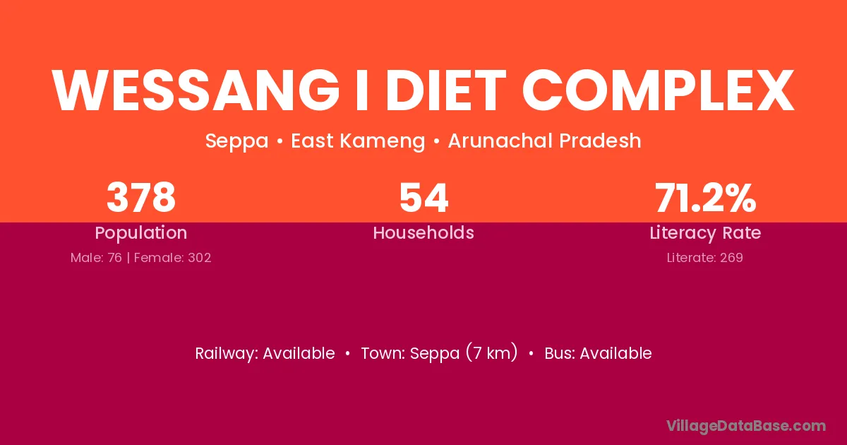 Wessang I Diet Complex village has a total population of 378 people, of which 76 are males and 302 are females.