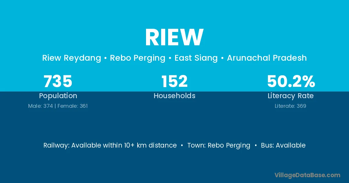 Riew village has a total population of 735 people, of which 374 are males and 361 are females.
