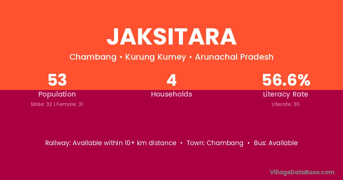Jaksitara village has a total population of 53 people, of which 32 are males and 21 are females.