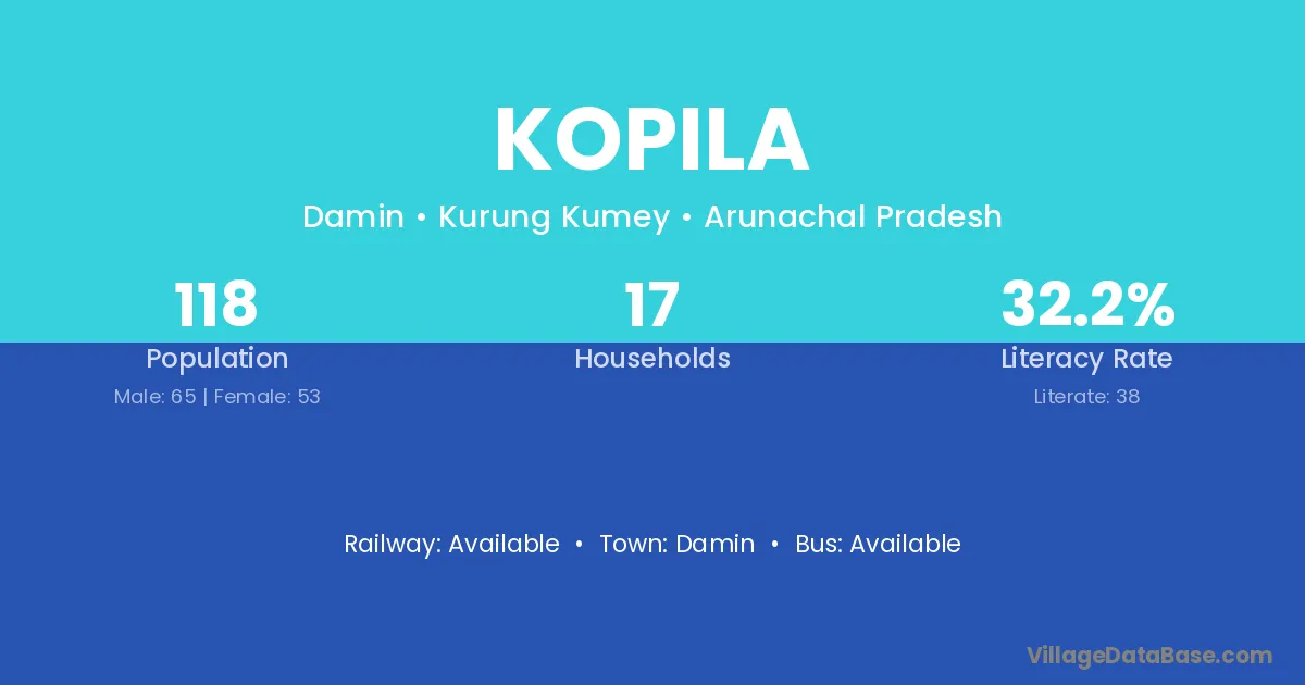 Kopila village has a total population of 118 people, of which 65 are males and 53 are females.
