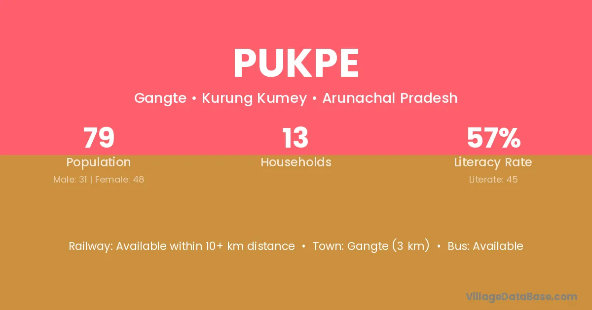 Pukpe village has a total population of 79 people, of which 31 are males and 48 are females.