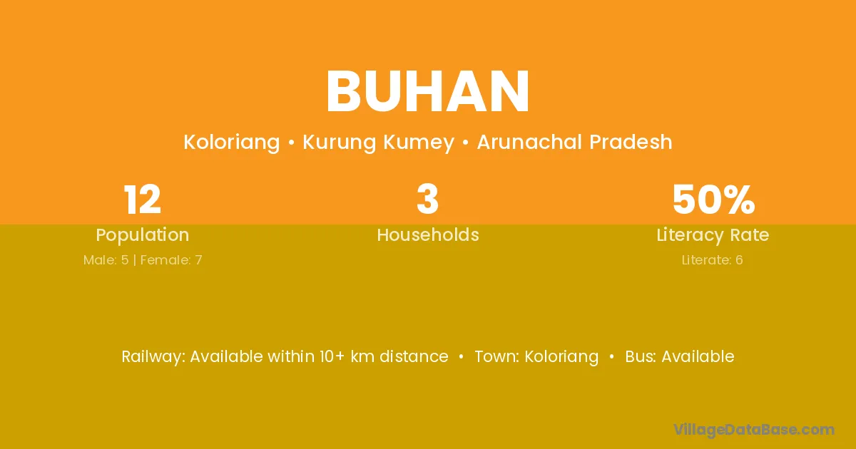 Buhan village has a total population of 12 people, of which 5 are males and 7 are females.