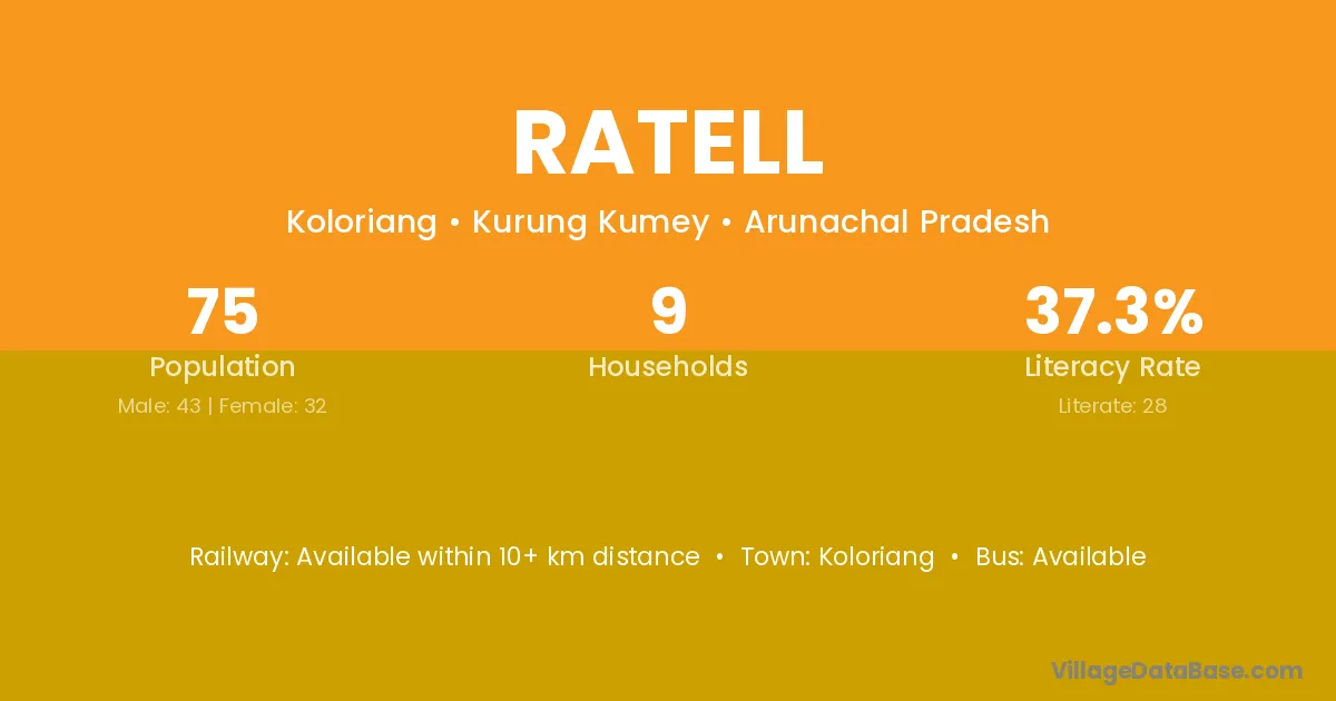 Ratell village has a total population of 75 people, of which 43 are males and 32 are females.