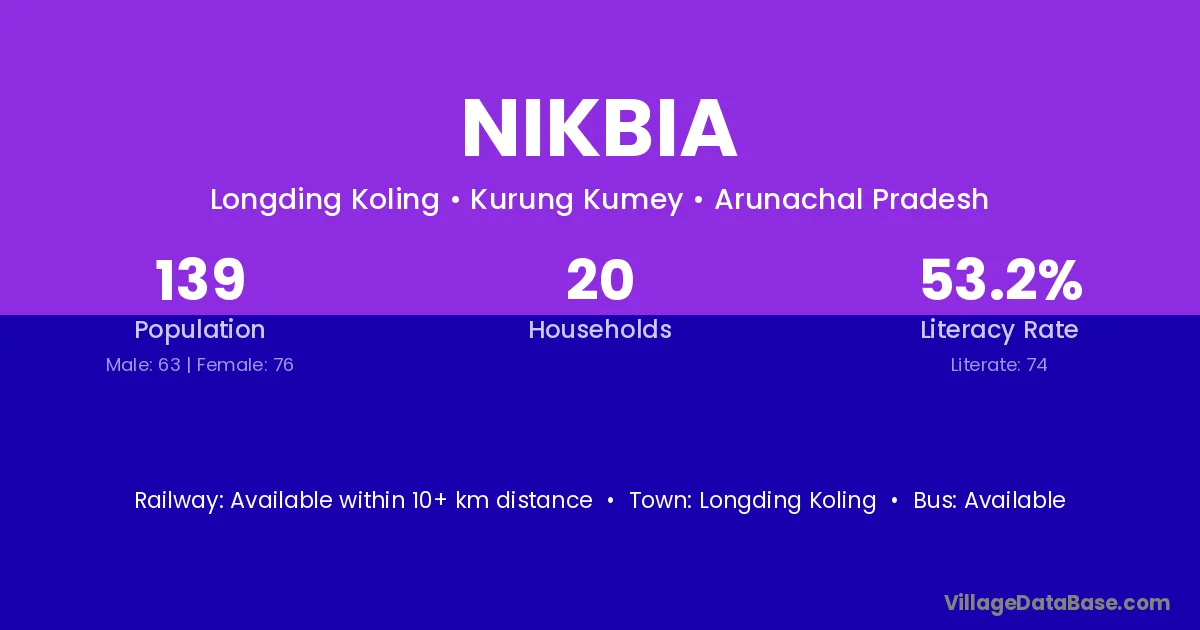 Nikbia village has a total population of 139 people, of which 63 are males and 76 are females.