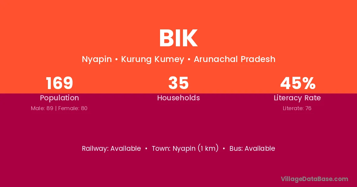 Nyapin (1 km) is the nearest town to Bik village for major economic activities and is located approximately 1 km away.