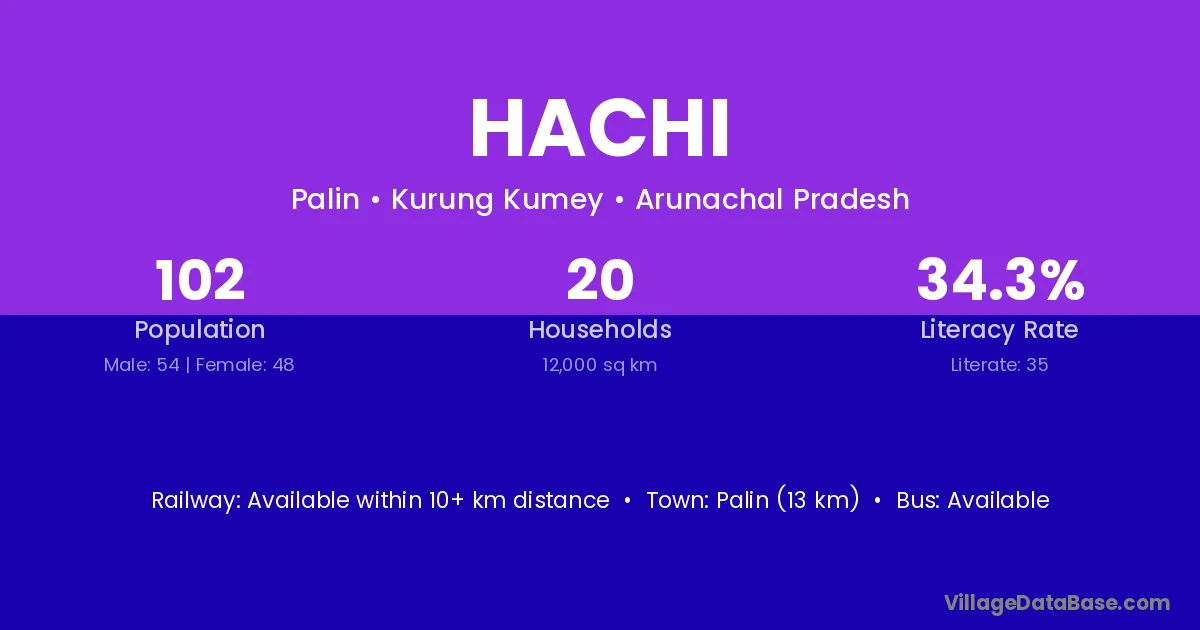 Palin (13 km) is the nearest town to Hachi village for major economic activities and is located approximately 13 km away.