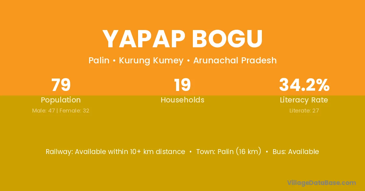 Yapap Bogu village has a total population of 79 people, of which 47 are males and 32 are females.