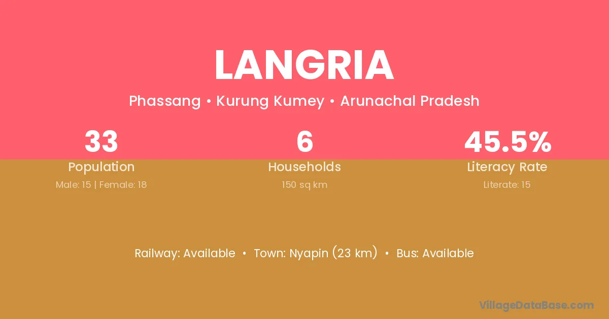 Nyapin (23 km) is the nearest town to Langria village for major economic activities and is located approximately 23 km away.