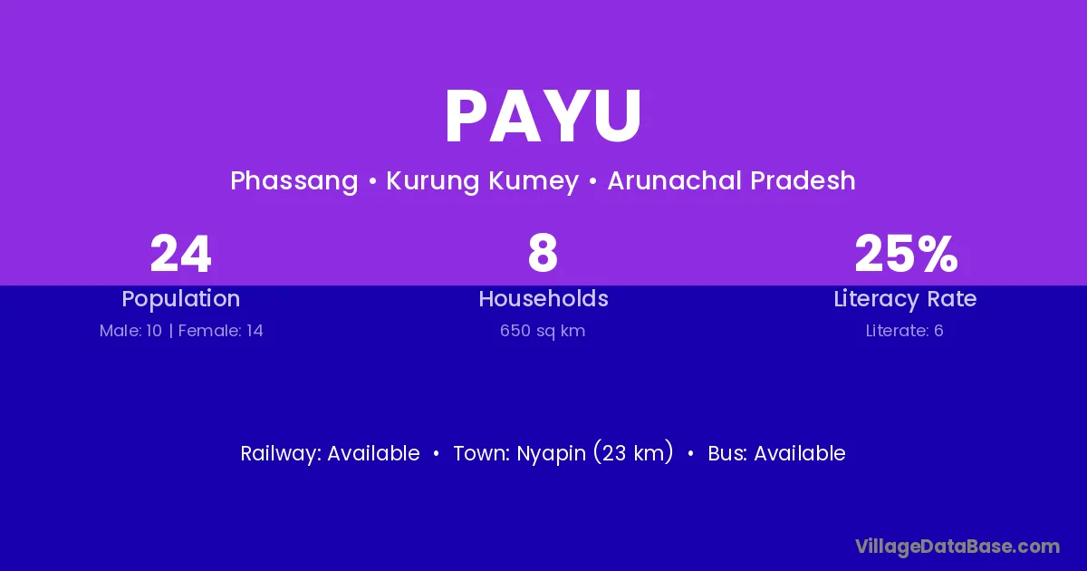 Payu village has a total population of 24 people, of which 10 are males and 14 are females.