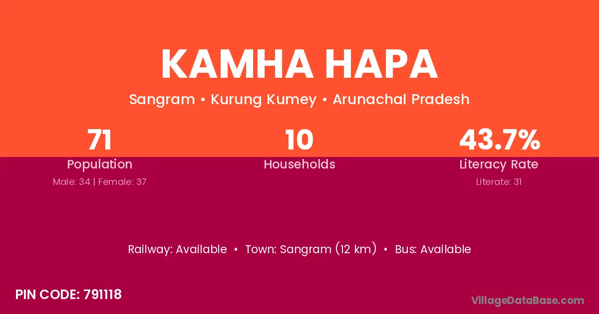 Kamha Hapa village has a total population of 71 people, of which 34 are males and 37 are females.