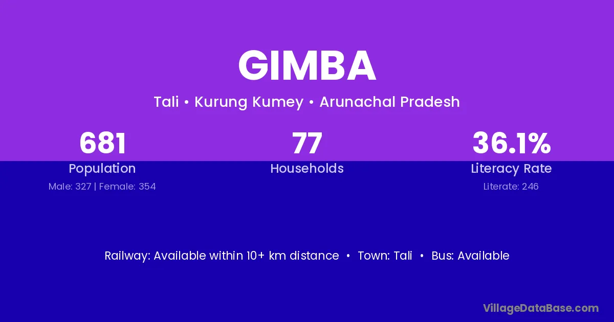Gimba village has a total population of 681 people, of which 327 are males and 354 are females.