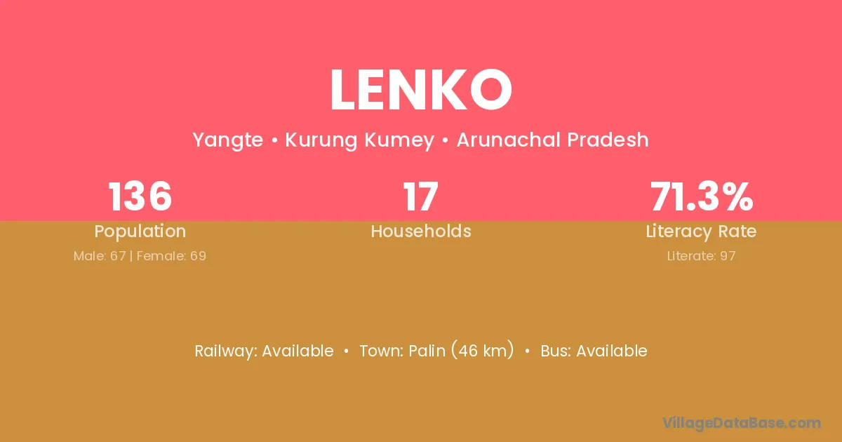Lenko village has a total population of 136 people, of which 67 are males and 69 are females.