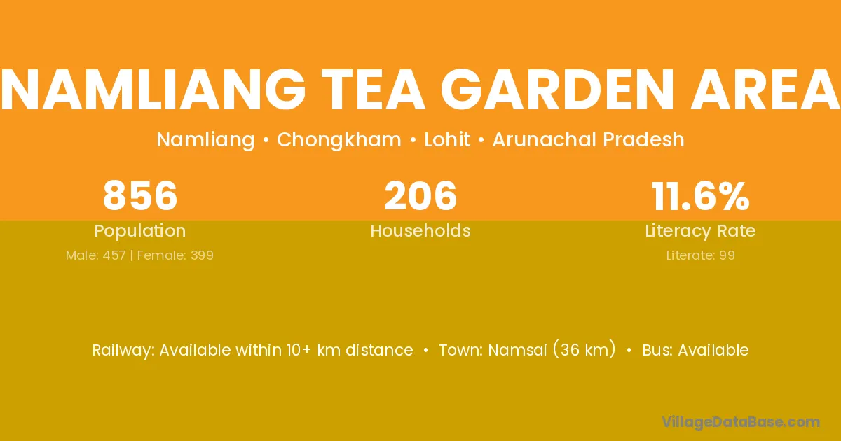 Namliang Tea Garden Area village has a total population of 856 people, of which 457 are males and 399 are females.