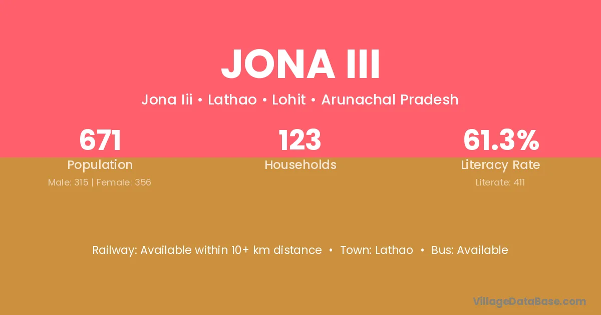 Jona Iii village has a total population of 671 people, of which 315 are males and 356 are females.