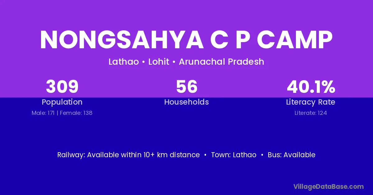 Nongsahya C P Camp village has a total population of 309 people, of which 171 are males and 138 are females.