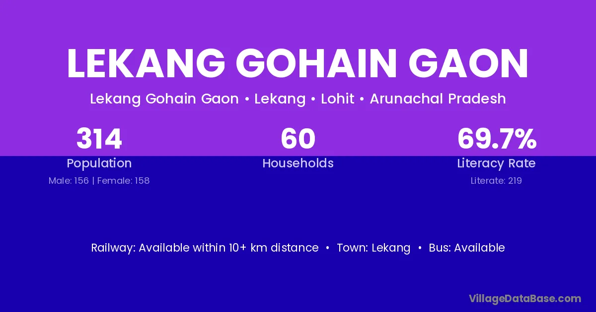 Lekang Gohain Gaon village has a total population of 314 people, of which 156 are males and 158 are females.