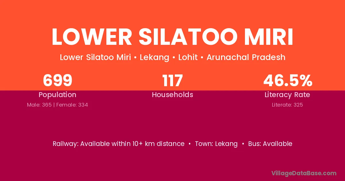 Lower Silatoo Miri village has a total population of 699 people, of which 365 are males and 334 are females.