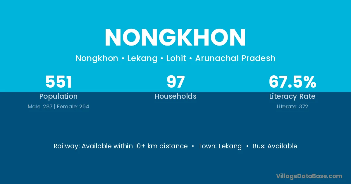 Nongkhon village has a total population of 551 people, of which 287 are males and 264 are females.