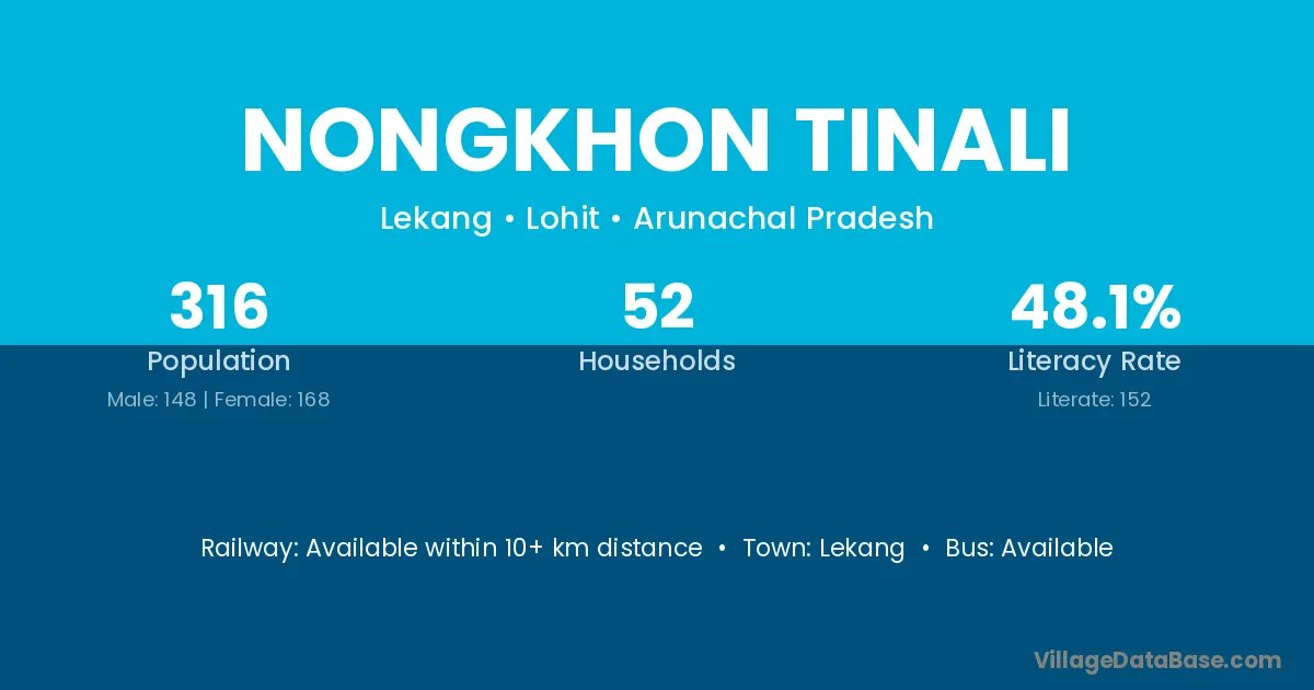 Nongkhon Tinali village is located in the Lekang Circle of the Lohit district in Arunachal Pradesh .