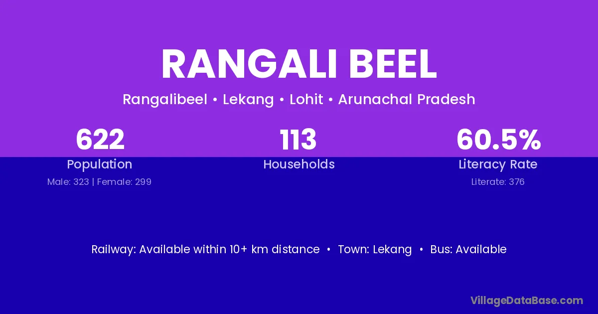 Rangali Beel village has a total population of 622 people, of which 323 are males and 299 are females.
