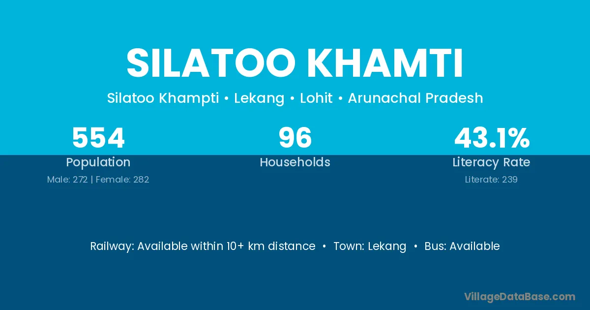 Silatoo Khamti village has a total population of 554 people, of which 272 are males and 282 are females.