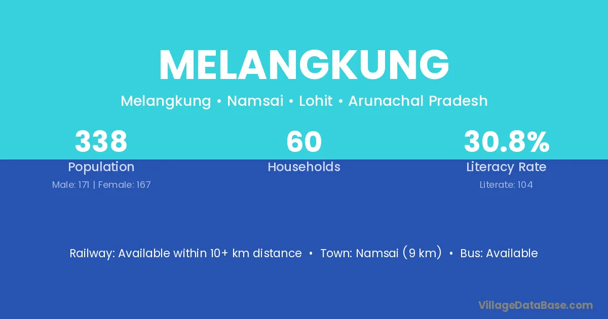 Namsai (9 km) is the nearest town to Melangkung village for major economic activities and is located approximately 9 km away.