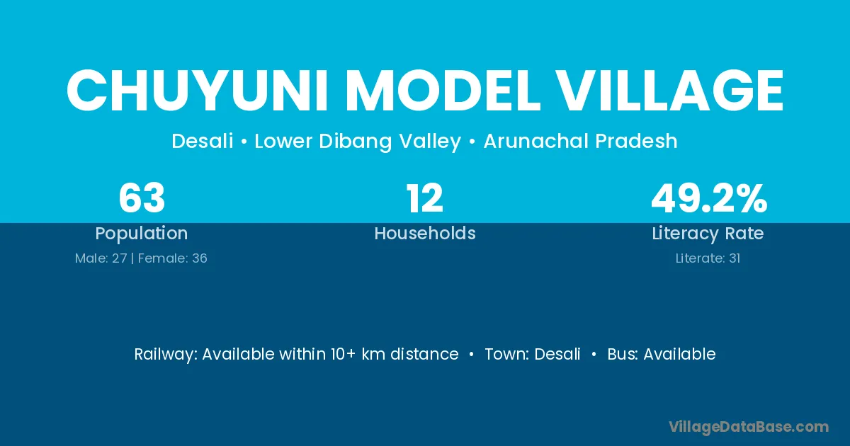 Chuyuni Model Village village is located in the Desali Circle of the Lower Dibang Valley district in Arunachal Pradesh .
