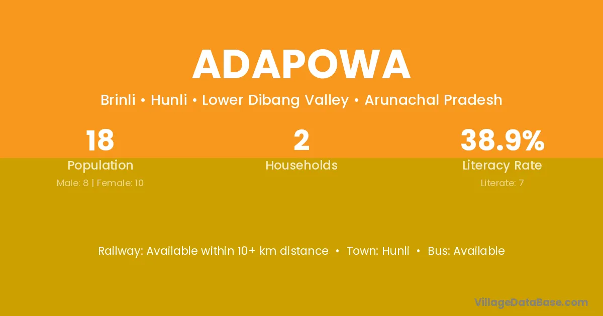 Adapowa village has a total population of 18 people, of which 8 are males and 10 are females.